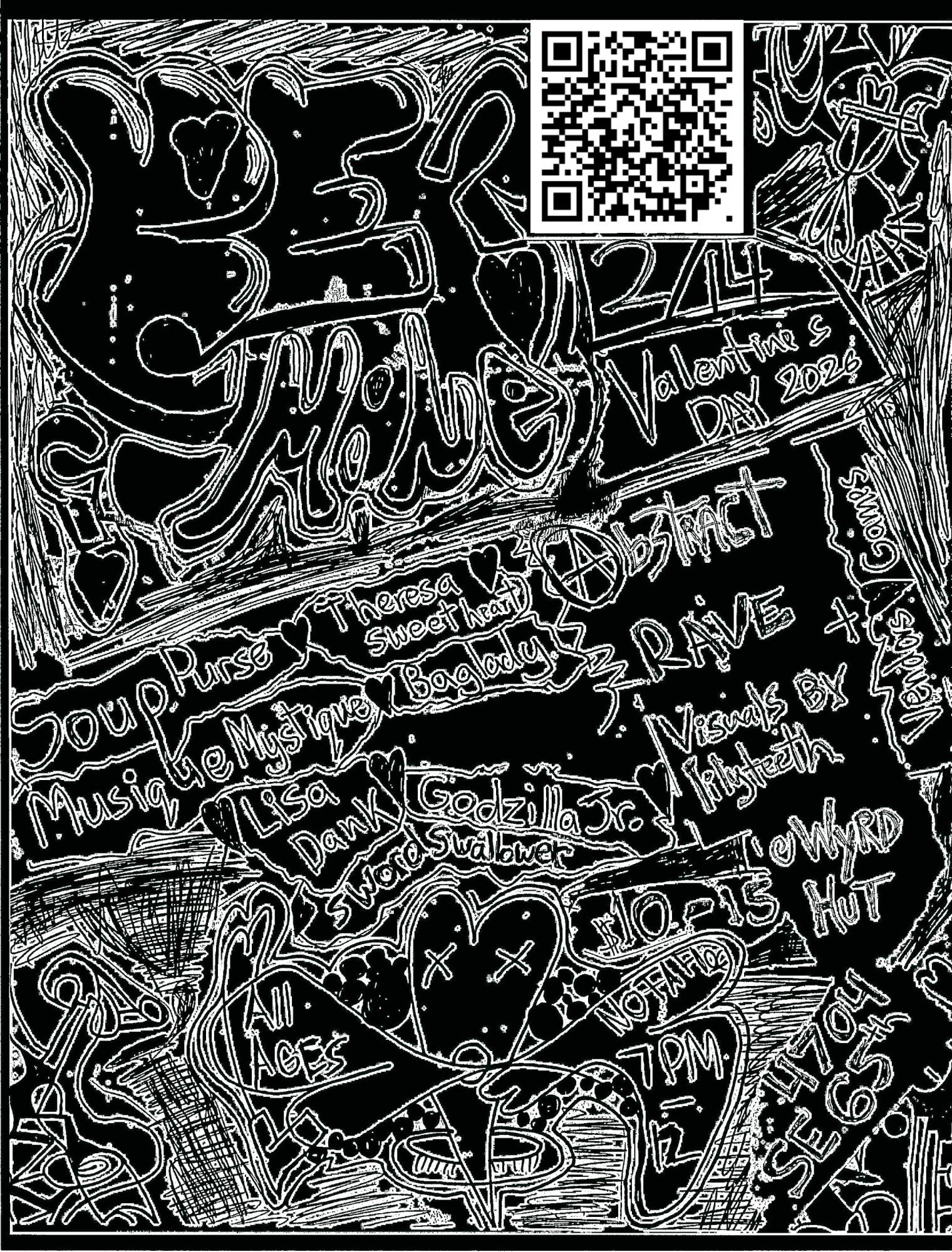 a sensual night of noise, ambience, electronic dance music, friends family and lovers! Bring them all to Wyrd hut in portland oregon on 2/14/26 ---